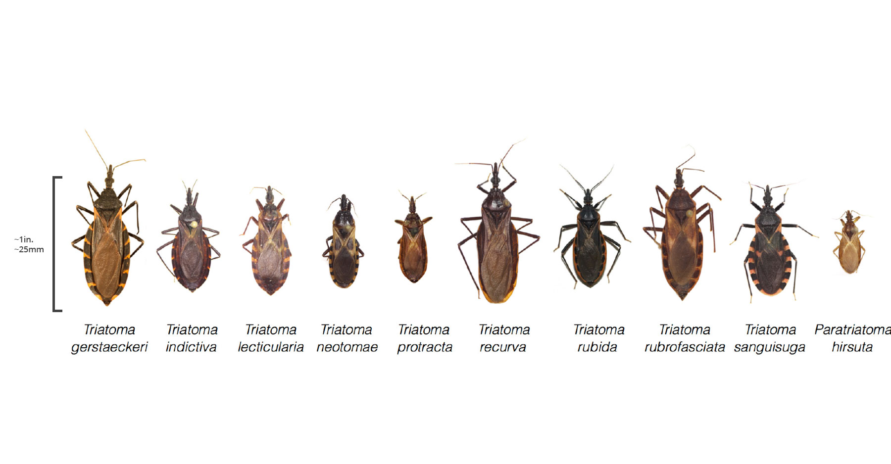 La chinche besucona se encuentra en todo el mundo y se alimenta de la sangre humana durante la noche. Este tipo de chinche puede transmitir la enfermedad de Chagas, que puede ser mortal si no se trata adecuadamente. Los síntomas incluyen fiebre, fatiga y dolores musculares.