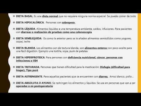 A continuación, se mencionan las dietas terapéuticas para diversas afecciones médicas.